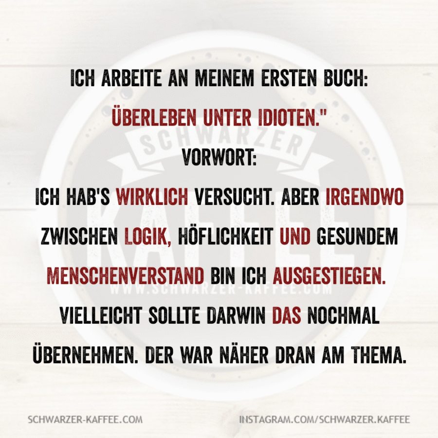 Ich arbeite an meinem ersten Buch: Überleben unter Idioten."