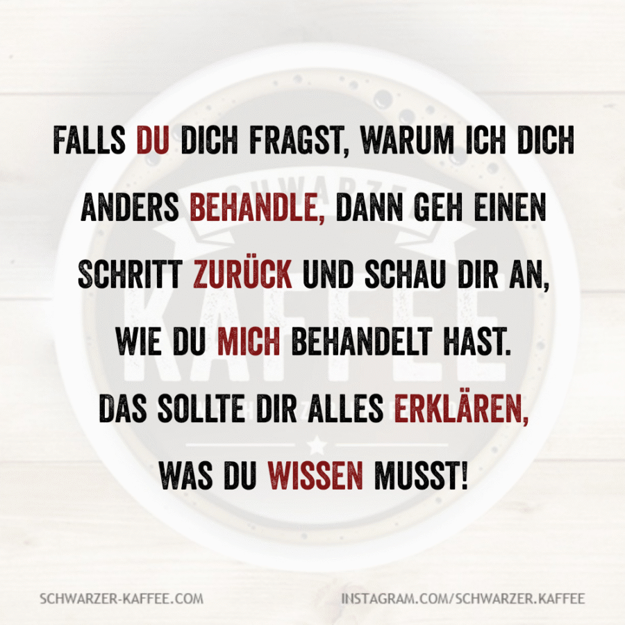 Falls du dich fragst, warum ich dich anders behandle, dann geh einen Schritt zurück und schau dir an, wie du mich behandelt hast.