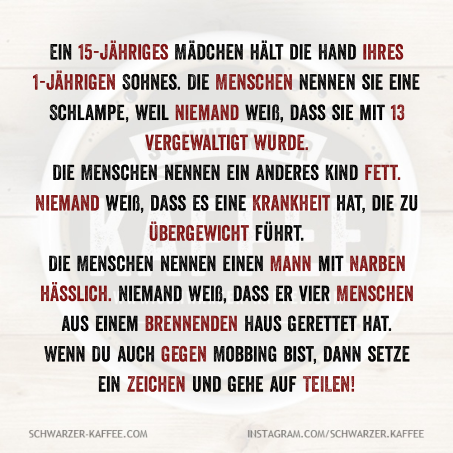 Wenn Du auch gegen Mobbing bist, dann setze ein Zeichen und gehe auf TEILEN!