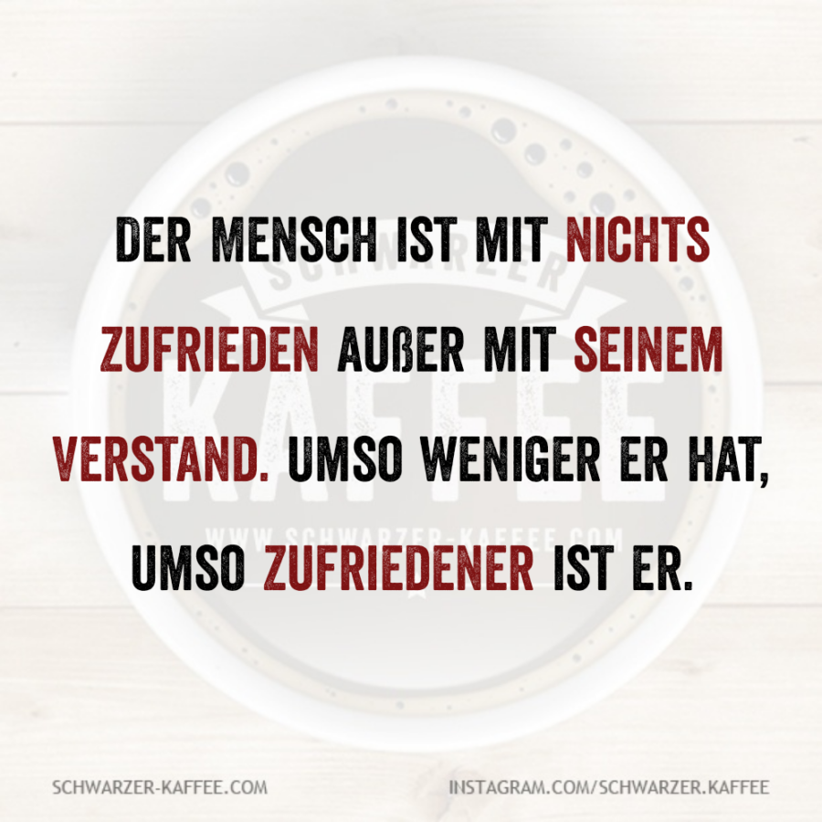 Der Mensch ist mit nichts zufrieden außer mit seinem Verstand. Umso weniger er hat, umso zufriedener ist er.