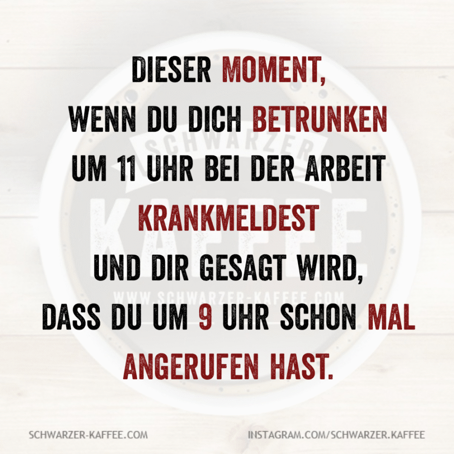 wenn du dich betrunken um 11 Uhr bei der Arbeit krankmeldest