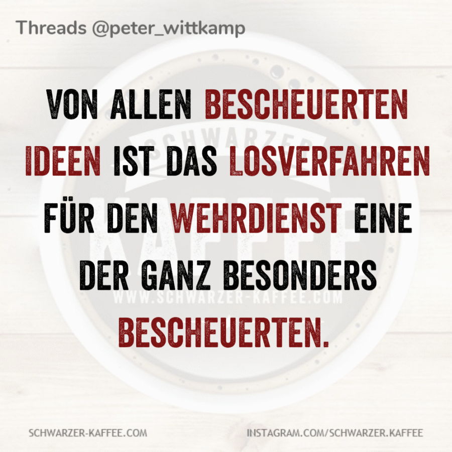 WEHRDIENST LOTTERIE Mehmet Karakolcu2025-10-14T18:56:00+02:00Von allen bescheuerten Ideen ist das Losverfahren für den Wehrdienst eine der ganz besonders bescheuerten Read more...