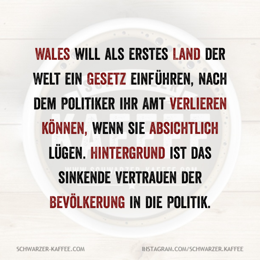 Wales will als erstes Land der Welt ein Gesetz einführen, nach dem Politiker ihr Amt verlieren können, wenn sie absichtlich lügen. Hintergrund ist das sinkende Vertrauen der Bevölkerung in die Politik.