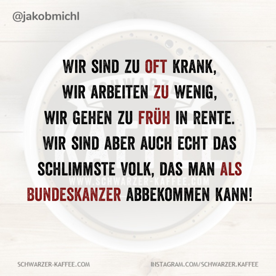 Mehmet Karakolcu2026-01-19T11:29:52+01:00 Wir sind zu oft krank, wir arbeiten zu wenig, wir gehen zu früh in Rente. Wir sind aber auch echt das schlimmste Volk, das man als Bundeskanzer abbekommen kann!