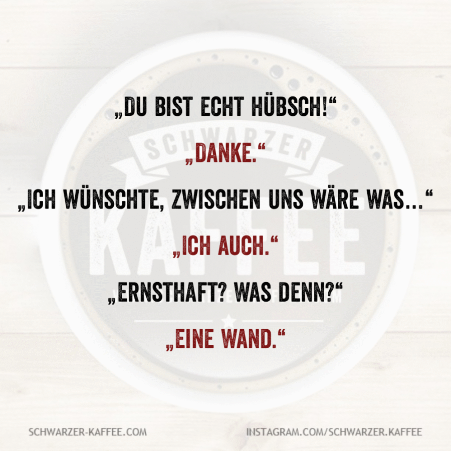 Mehmet Karakolcu2025-11-08T20:00:37+01:00 „Du bist echt hübsch!“ „Danke.“ „Ich wünschte, zwischen uns wäre was…“ „Ich auch.“ „Ernsthaft? Was denn?“ „Eine Wand.“