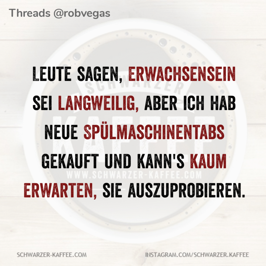Mehmet Karakolcu2025-11-07T08:30:42+01:00 Leute sagen, Erwachsensein sei langweilig, aber ich hab neue Spülmaschinentabs gekauft und kann’s kaum erwarten, sie auszuprobieren.