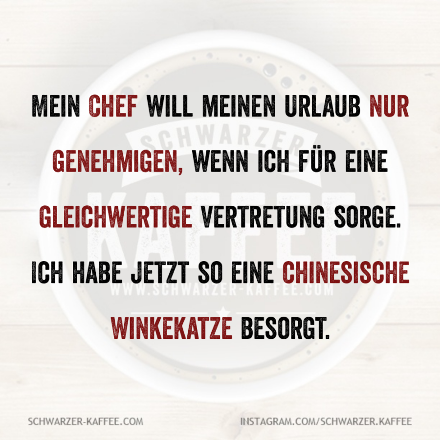 Mehmet Karakolcu2026-01-05T14:30:19+01:00 Mein Chef will meinen Urlaub nur genehmigen, wenn ich für eine gleichwertige Vertretung sorge. Ich habe jetzt so eine chinesische Winkekatze besorgt.