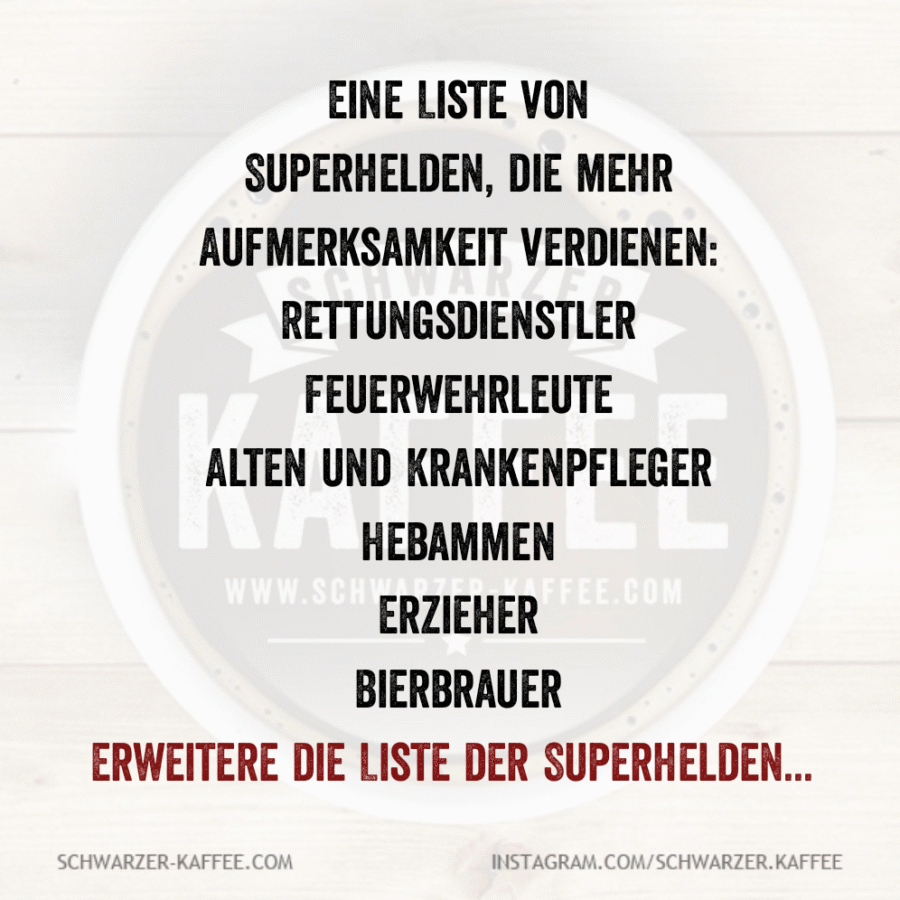 Mehmet Karakolcu2025-12-02T15:50:47+01:00 Eine Liste von Superhelden, die mehr Aufmerksamkeit verdienen: Rettungsdienstler Feuerwehrleute Alten und Krankenpfleger Hebammen Erzieher Bierbrauer Erweitere die Liste der Superhelden…