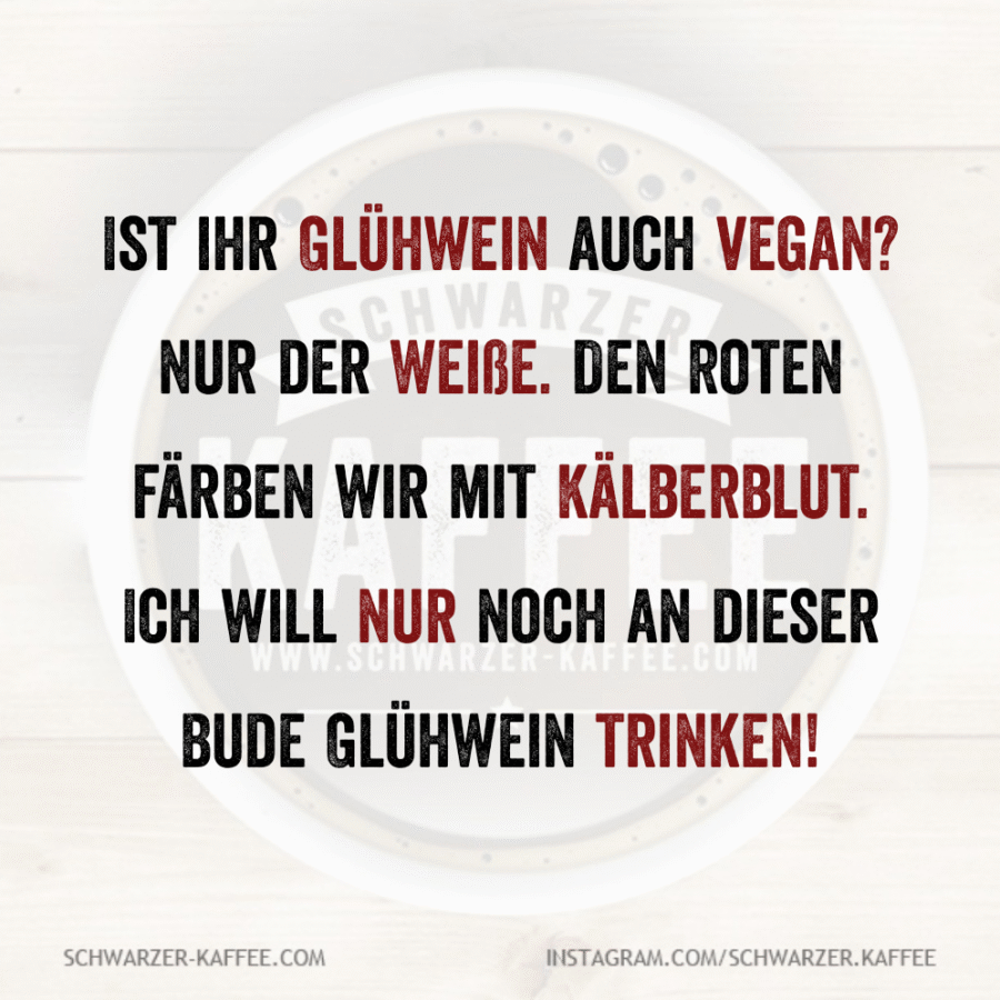 Mehmet Karakolcu2025-12-02T11:30:28+01:00 Ist ihr Glühwein auch vegan?Nur der Weiße. Den Roten färben wir mit Kälberblut.Ich will nur noch an dieser Bude Glühwein trinken!