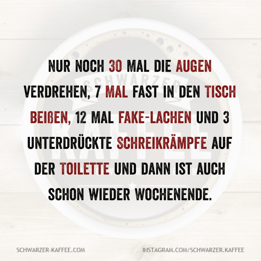 Mehmet Karakolcu2025-10-17T05:45:41+02:00 Nur noch 30 Mal die Augen verdrehen, 7 Mal fast in den Tisch beißen, 12 Mal fake-lachen und 3 unterdrückte Schreikrämpfe auf der Toilette und dann ist auch schon wieder Wochenende.
