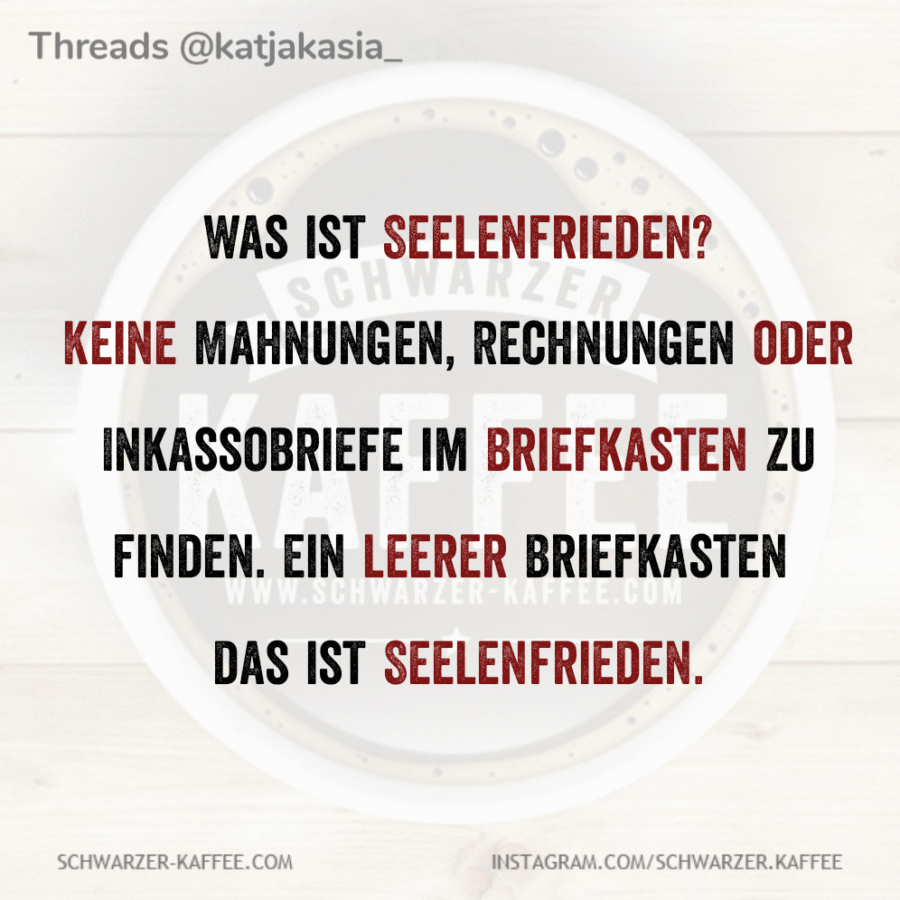 SEELENFRIEDEN Mehmet Karakolcu2025-10-23T20:00:37+02:00Was ist Seelenfrieden? Keine Mahnungen, Rechnungen oder Inkassobriefe im Briefkasten zu finden. Ein leerer Briefkasten das ist Seelenfrieden. Read more...