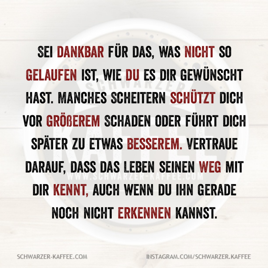 Sei dankbar für das, was nicht so gelaufen ist, wie du es dir gewünscht hast. Manches Scheitern schützt dich vor größerem Schaden oder führt dich später zu etwas Besserem. Vertraue darauf, dass das Leben seinen Weg mit dir kennt, auch wenn du ihn gerade noch nicht erkennen kannst.
