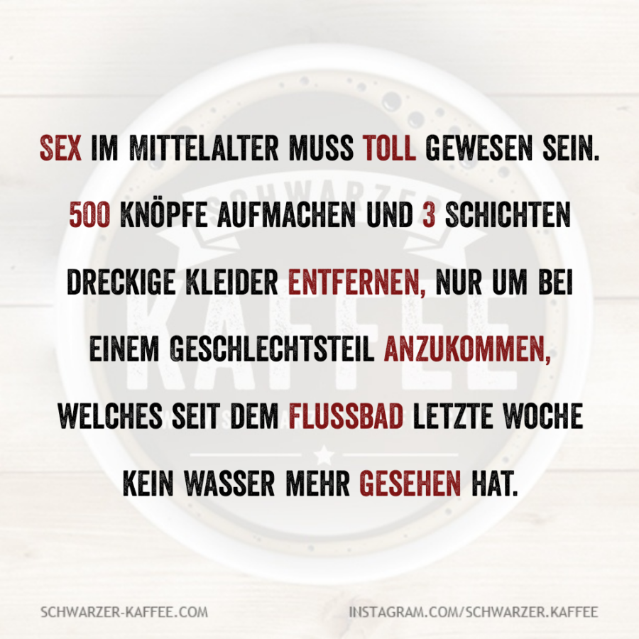 Mehmet Karakolcu2026-01-17T17:45:37+01:00 Sex im Mittelalter muss toll gewesen sein. 500 Knöpfe aufmachen und 3 Schichten dreckige Kleider entfernen, nur um bei einem Geschlechtsteil anzukommen, welches seit dem Flussbad letzte Woche kein Wasser mehr gesehen hat.