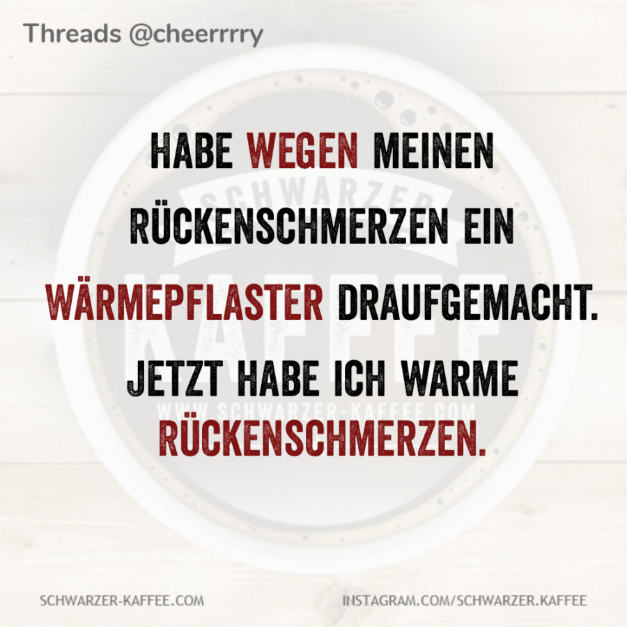 Mehmet Karakolcu2025-09-29T17:45:32+02:00 Habe wegen meinen Rückenschmerzen ein Wärmepflaster draufgemacht. Jetzt habe ich warme Rückenschmerzen.